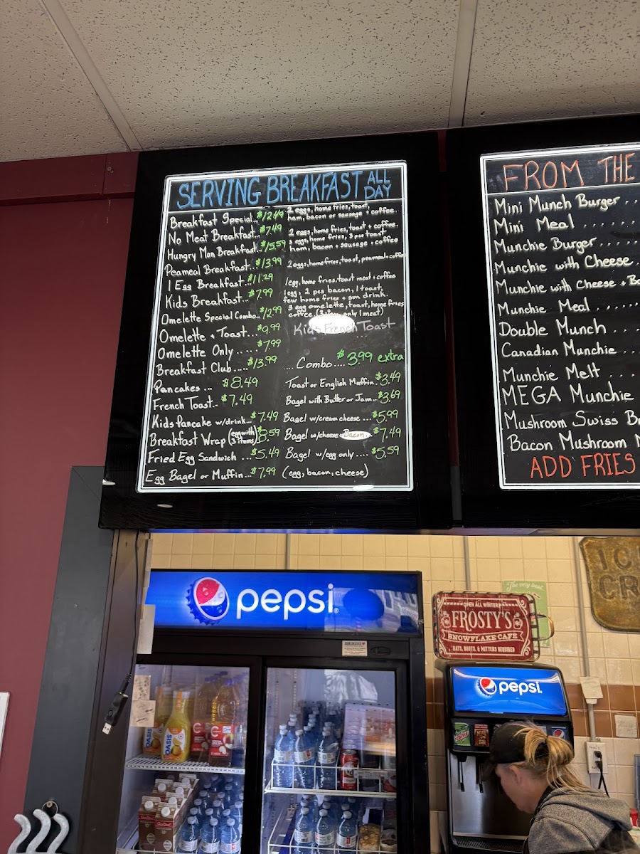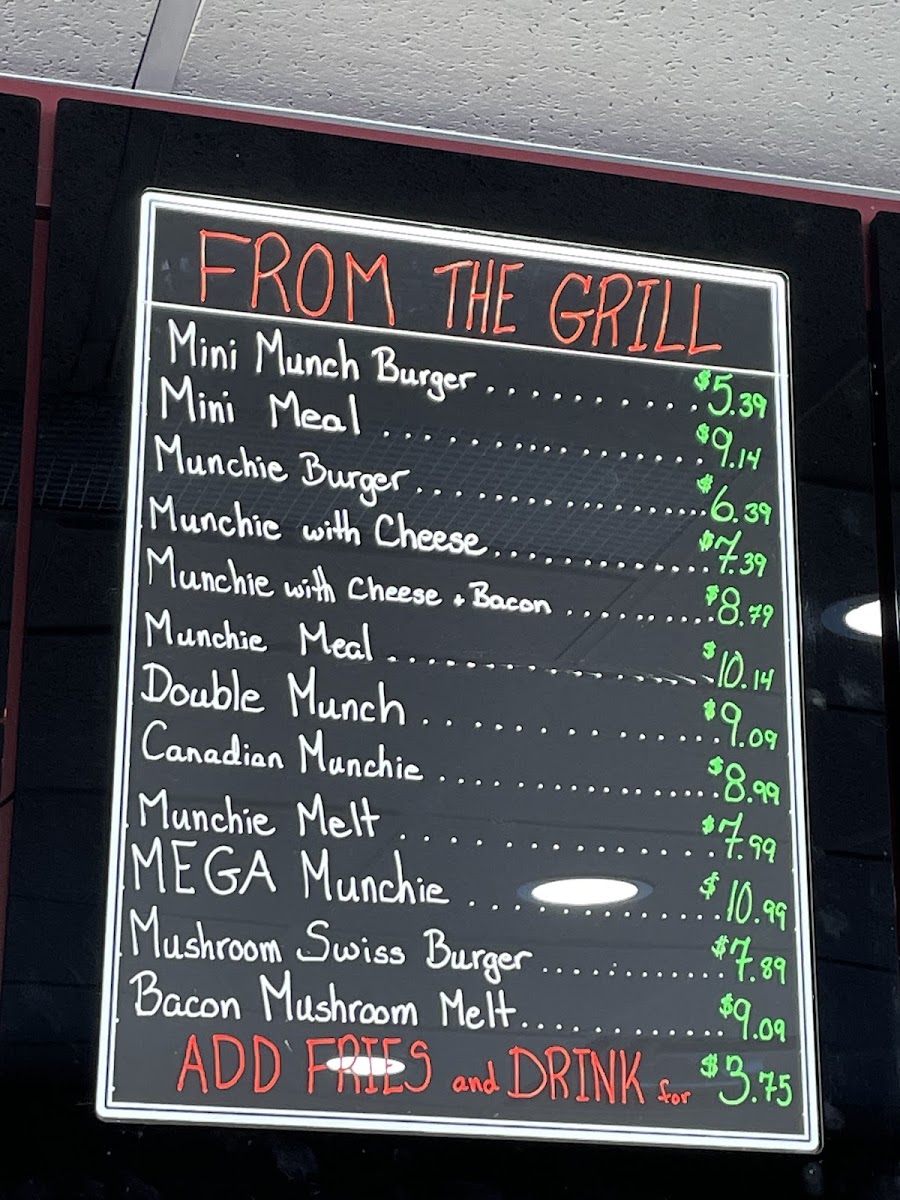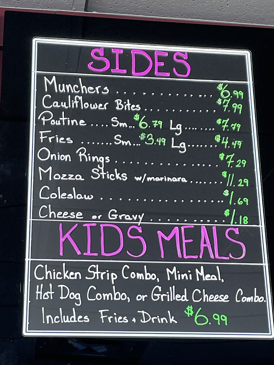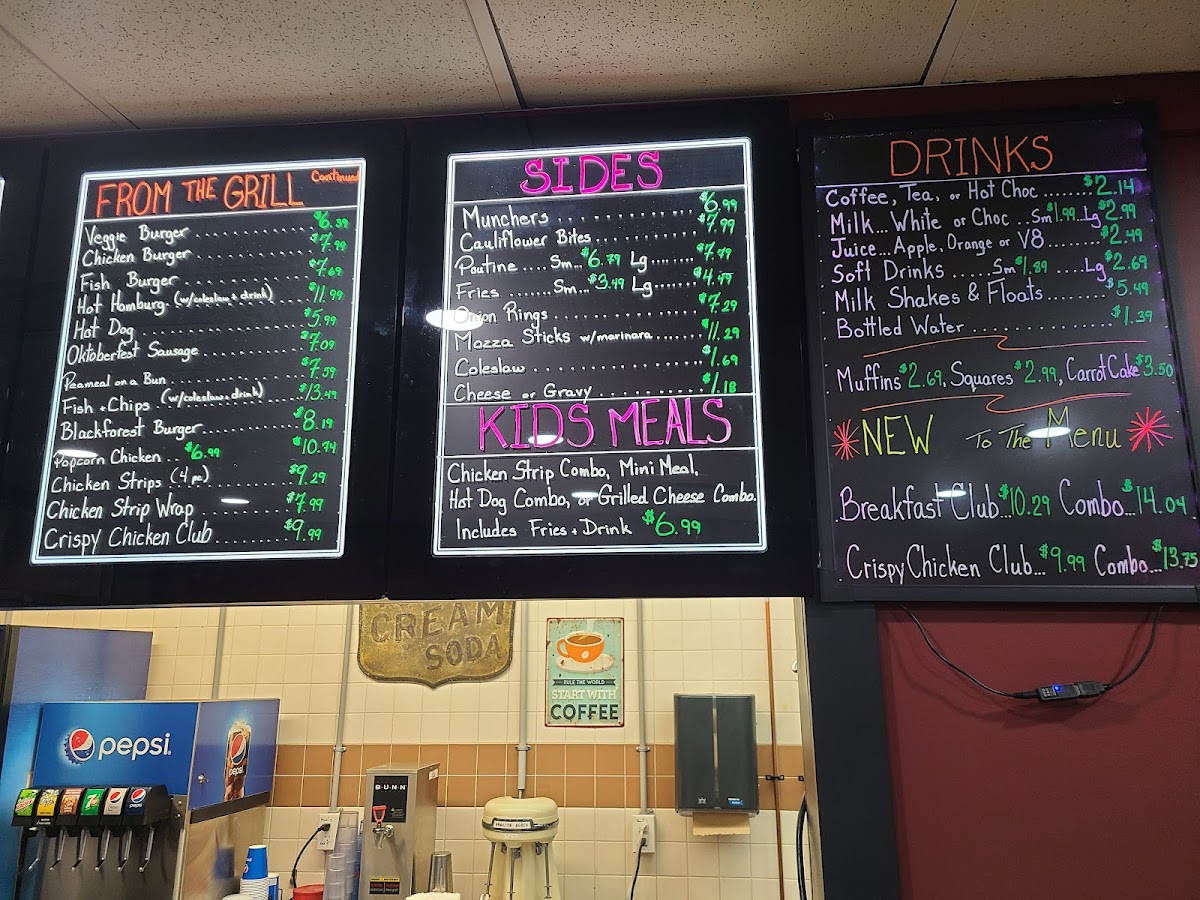 From a reviewer’s perspective, the menu at Munchies Petrolia at 4375 Petrolia Line, Petrolia, ON N0N 1R0, Canada offers a satisfying snapshot of classic comfort food done right. The From The Grill section stands out with hearty, familiar favorites like Chicken Strips, Chicken Strip Wrap, Crispy Chicken Club, Veggie Burger, and Chicken Burger, appealing to both meat lovers and those seeking lighter alternatives. To complement these mains, the Sides selection adds variety and indulgence with options such as Munchers, Cauliflower Bites, Fries, Onion Rings, and Mazza Sticks, making it easy to build a well-rounded meal. For families, the Kids Meals category keeps things simple and approachable with the Chicken Strip Combo, a reliable choice for younger diners. The Sandwiches & Wraps lineup-including Fried Egg, Grilled Cheese, Rueben, and Clubhouse-brings a diner-style charm that feels both nostalgic and filling. Meanwhile, the Soups and Salads section balances the menu with lighter fare like Homemade Soup Of The Day, Garden Salad, and Caesar Salad, ideal for those seeking comfort with a fresher touch. Breakfast lovers are also well served with all-day classics such as Breakfast Club, Hungry Man Breakfast, Peameal Breakfast, Omelette Special Combo, and Omelette Toast. Overall, the menu reflects Munchies Petrolia’s focus on generous portions, familiar flavors, and broad appeal, making it a welcoming spot for casual dining at any time of day.
